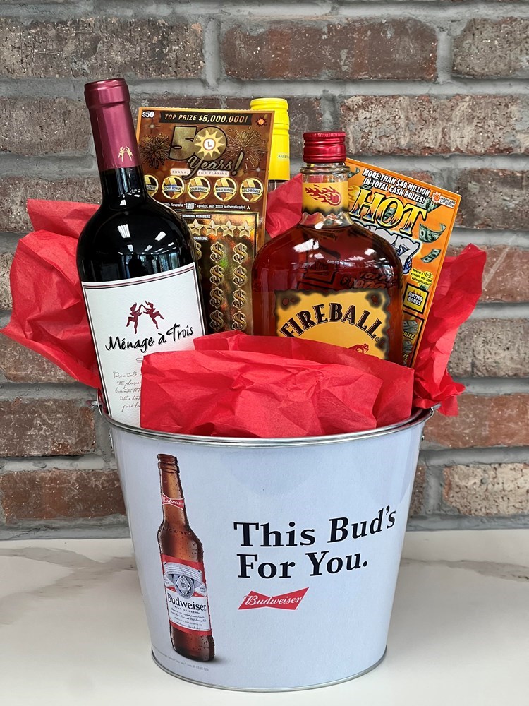 Enjoy 2 scratch-offs ($50 & $20), bottle of red wine, bottle of fire ball and lemon vodka.