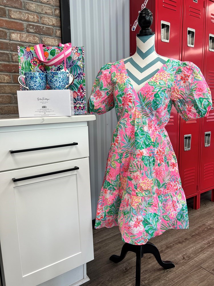 Be decked out in ALL Lilly Pulitzer! Lilly reusable bag retails $16.95, 2-tea cups retail $42 & Lilly dress size 12 retails $195. All Brand new w/tags & box.