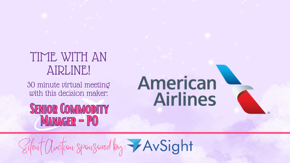 This is an exclusive opportunity to meet with, Kimberly Szoka, Sr. Commodity Manager-PO, a top executive from a major airline or MRO facility while supporting our efforts to Inspire the Next Generation of Aviation Professionals! This is your chance to gain valuable insights into the airline industry, ask questions, build potential business deals or partnerships, and make connections that could benefit your business. The meeting will be virtual and in a one-on-one setting, giving you the executives' undivided attention. This is a rare chance to gain exclusive access to a vital airline decision-maker and take your business to new heights. Take advantage of this incredible opportunity to support A-WING and gain valuable connections that could impact your business for years to come!