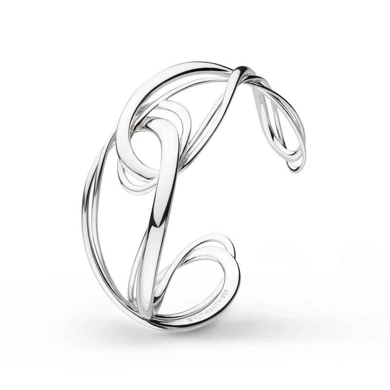 Forever at the ready for untold styling opportunities, the grande Infinity cuff bangle is a statement piece to treasure now and always. The contemporary interpretation of the infinity symbol is designed in a luxurious style using premium sterling silver, representing love and togetherness on an endless scale. Sterling silver, rhodium plated Can fit an oversized wrist up to 8 inches Design in England by Kit Heath
