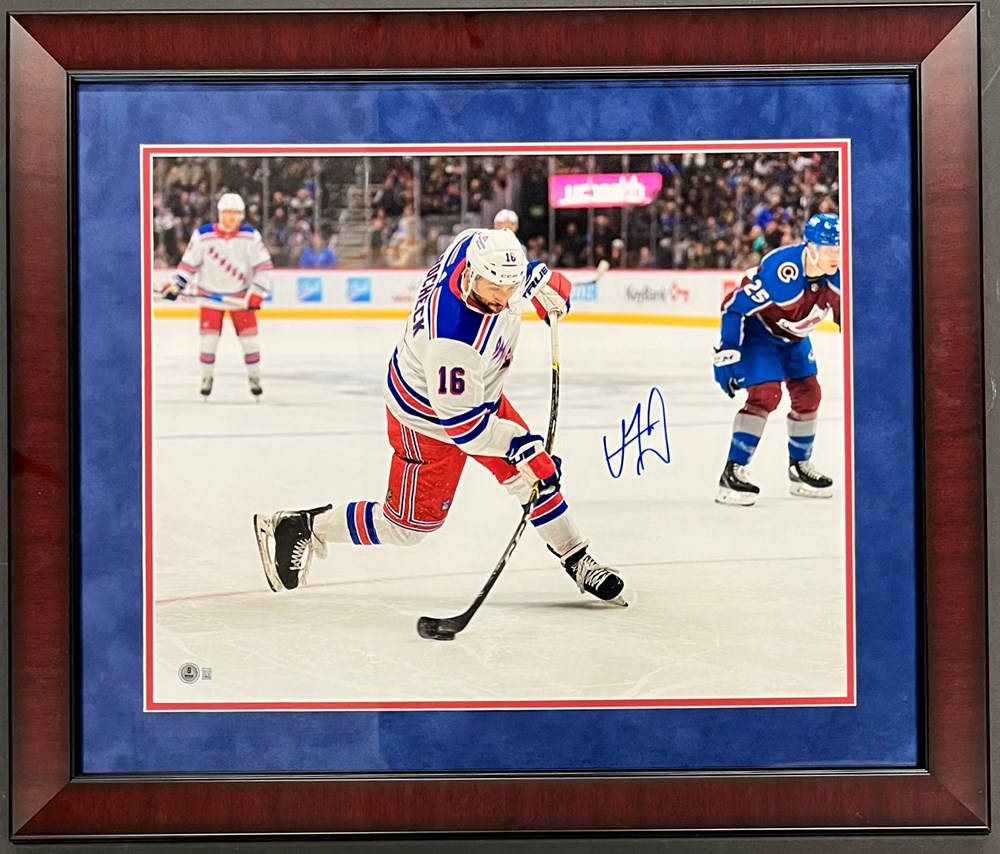 Color 16x20 photo signed by New York Rangers favorite Vincent Trocheck. The photo is authenticated by Beckett.